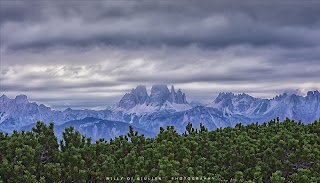 Lo spettacolo delle tre cime è sempre emozionante, la mia immagine vi propone una inquadratura diversa, fuori dalle classiche vedute e con una luce che è fiacca direi plumbea ma che a mio avviso valorizza la catena montuosa all'orizzonte.