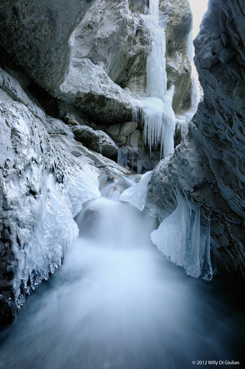 La terza invece è stata pensata attentamente, volevo il cielo come una fessura e contemporaneamente evidenziare il ghiaccio e la trama della roccia. Per la luce niente da fare in Inverno il sole non ci arriva.